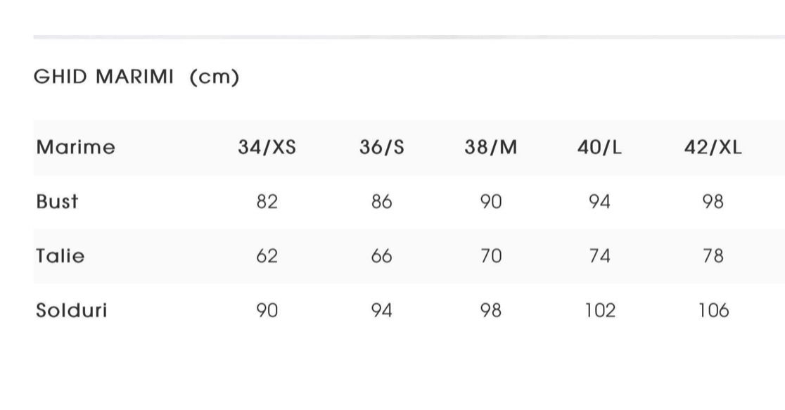 | Marime | XS, S, M, L, XL, XXL |